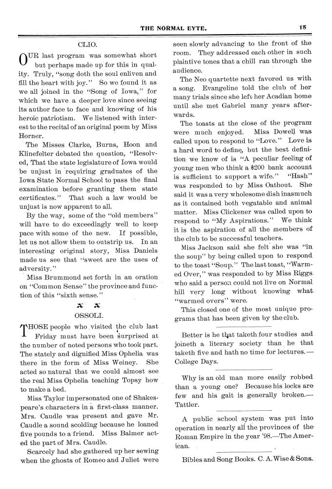 | Miss Jennie McKellar | Teaching in Shell Rock as are several other Normalites. |