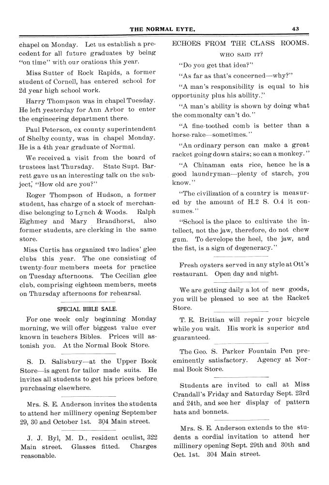 | Miss Curtiss | Has organized two women's glee clubs. |