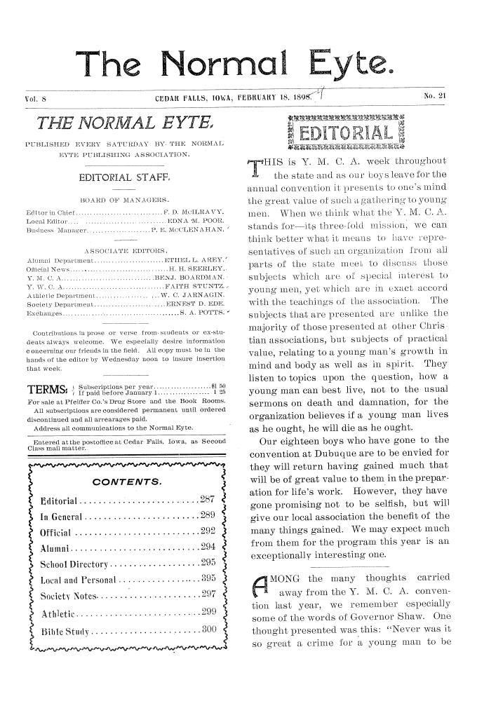| This is YMCA week throughout the state | Considers the value of the organization; eighteen men have gone to the convention in Dubuque, including a musical quartet. |