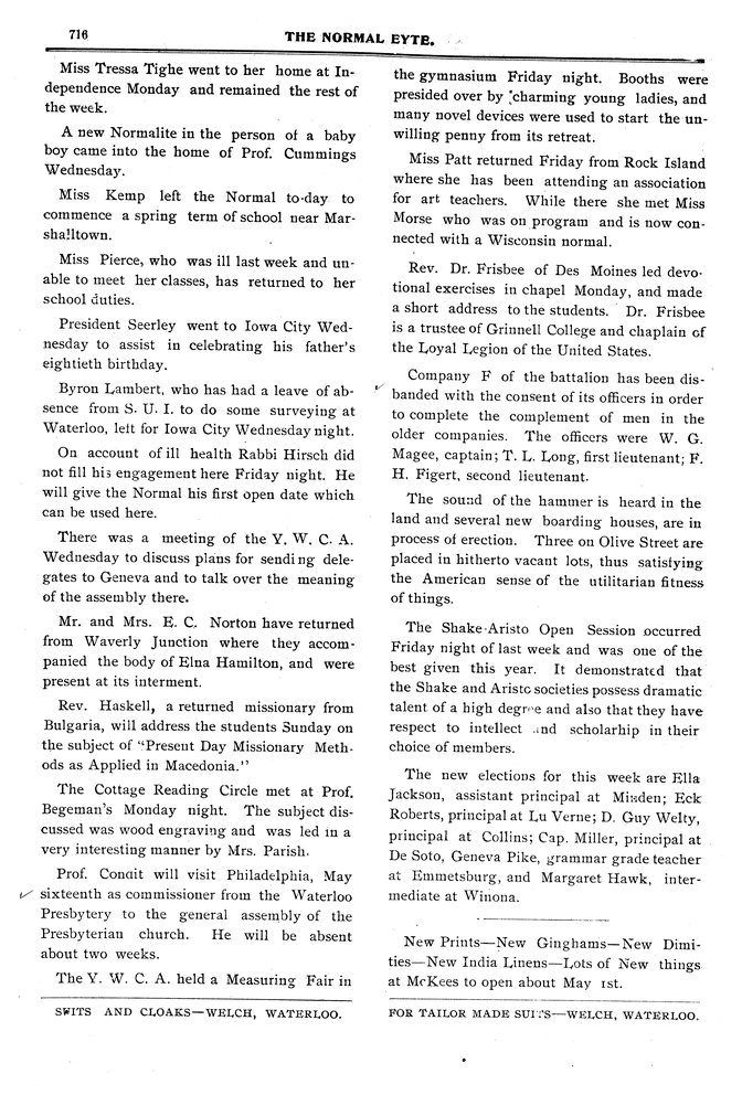 Prof. Condit Will go to Philadelphia as delegate to Presbyterian meeting.