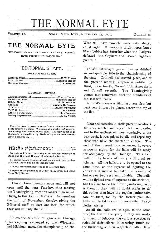 | School closes Tuesday | Normal Eyte will not be published next week due to longer Thanksgiving break. |