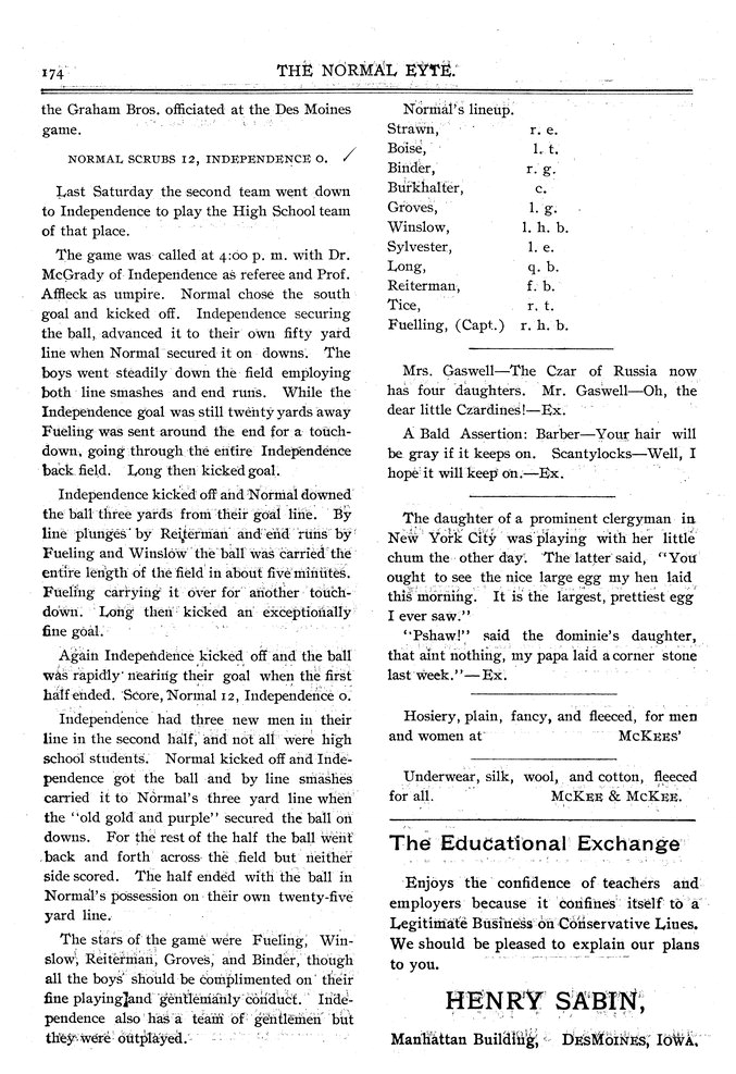 | Normal scrubs 12, Independence 0 | Normal's second team defeats Independence High School. |