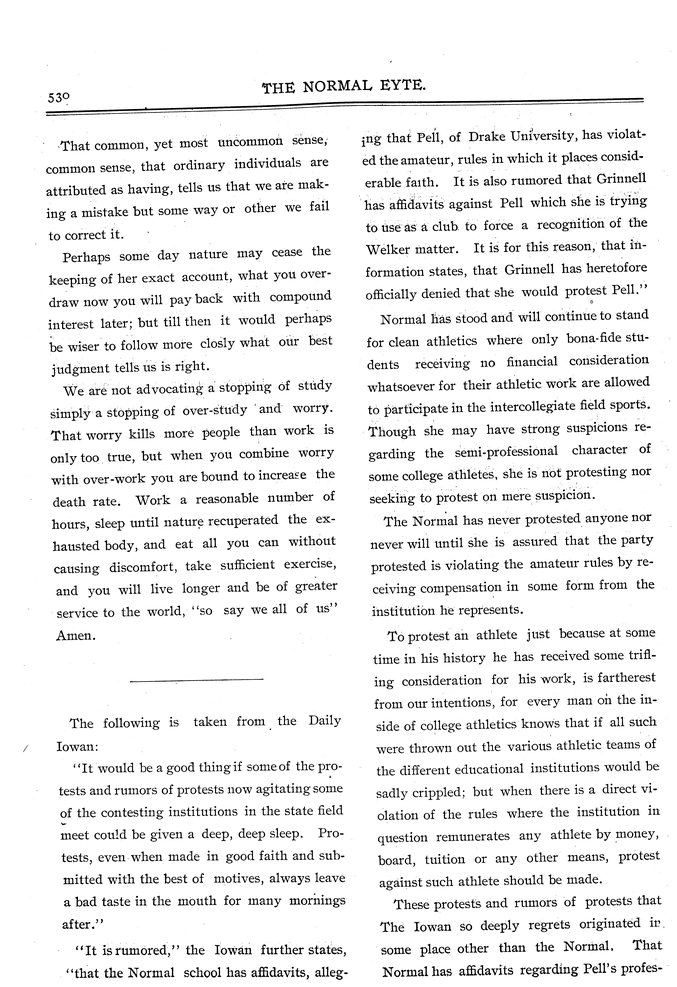 | The following is taken from the Daily Iowan | Disputes the claim that the Daily Iowan has made against the Normal School concerning a student from Drake University. |