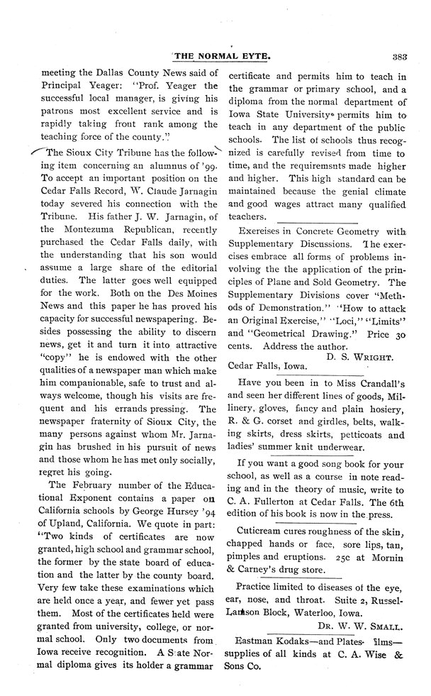 | The Sioux City Tribune | Claude Jarnagin will take over the Cedar Falls Daily Record. |