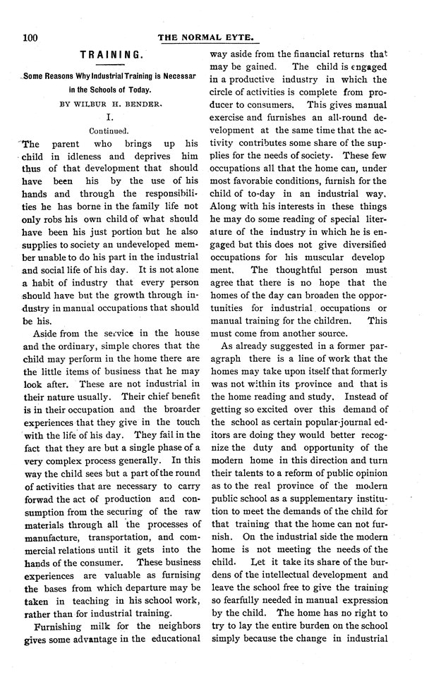 | Training | Some reasons why industrial training is necessary in the schools of today. |