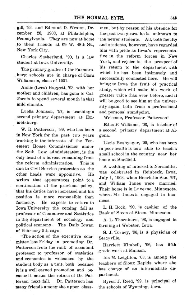 | W. R. Patterson | Will continue his work with the New York City housing commission this year and then return to his position at the University of Iowa. |