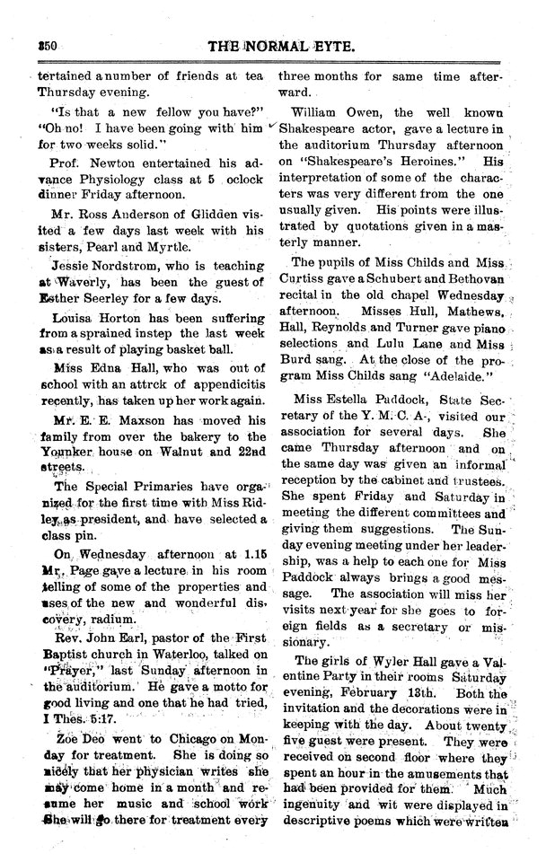 | Miss Estella Paddock | State YMCA secretary was on campus. |