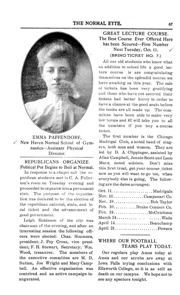 | Emma Paffendorf; New Haven Normal School of Gymnastics--Assistant Physical Director | Miss Emma Paffendorf; photo. |