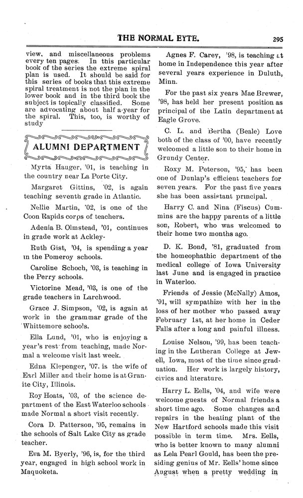 | Eva M. Byerly | Is engaged in high school work in Maquoketa. |