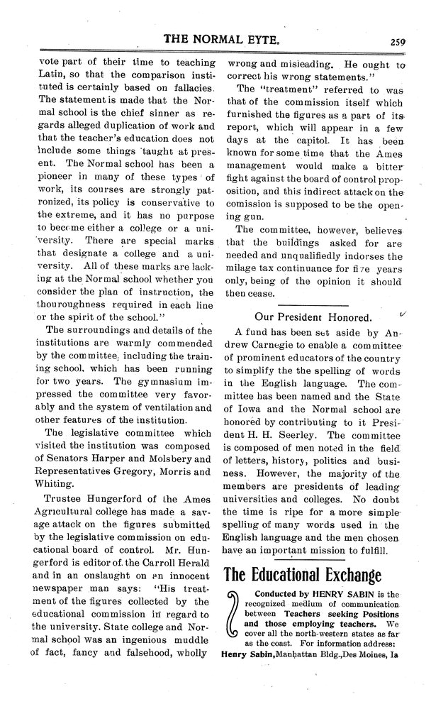 | Our president honored | President Seerley was added to the committee on simplified spelling. |