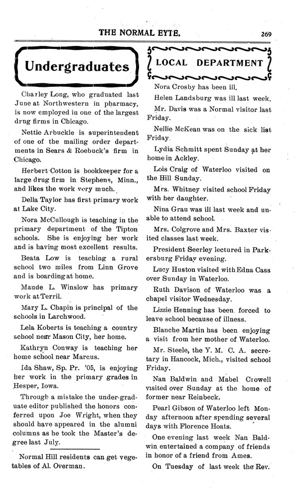 | Mrs. Whitney | Visited daughter Elizabeth. |