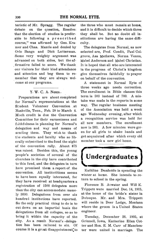 Tuesday, December 26, 1905 Katherine Ellen Cotter married E. M. Carr.