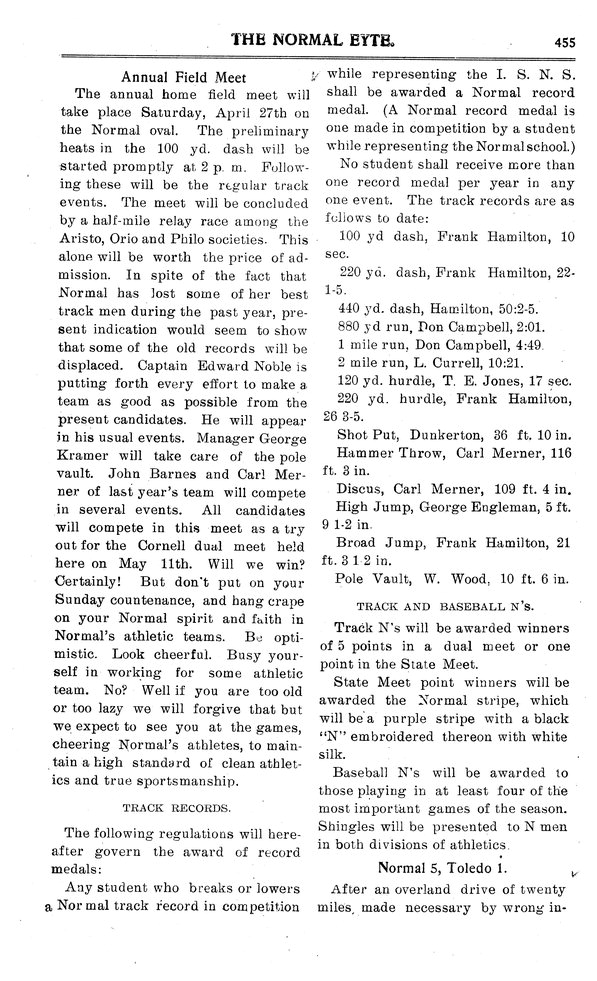 | Annual field meet | Meet preview with standing records. |