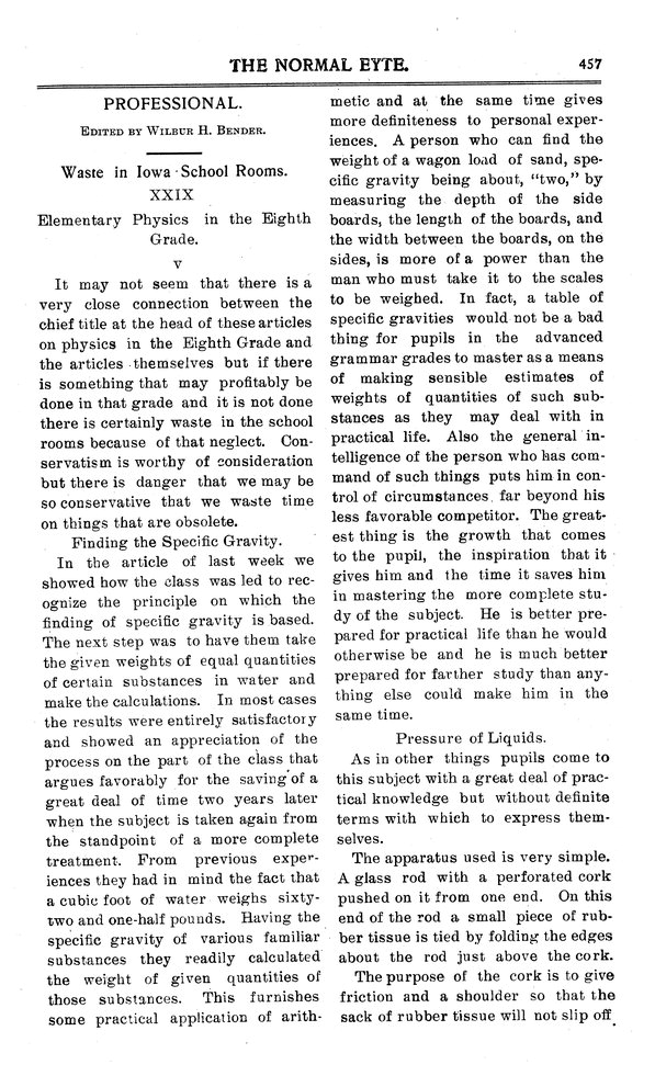 Professional; waste in Iowa school rooms The fifth article dealing with elementary physics in the eighth grade.