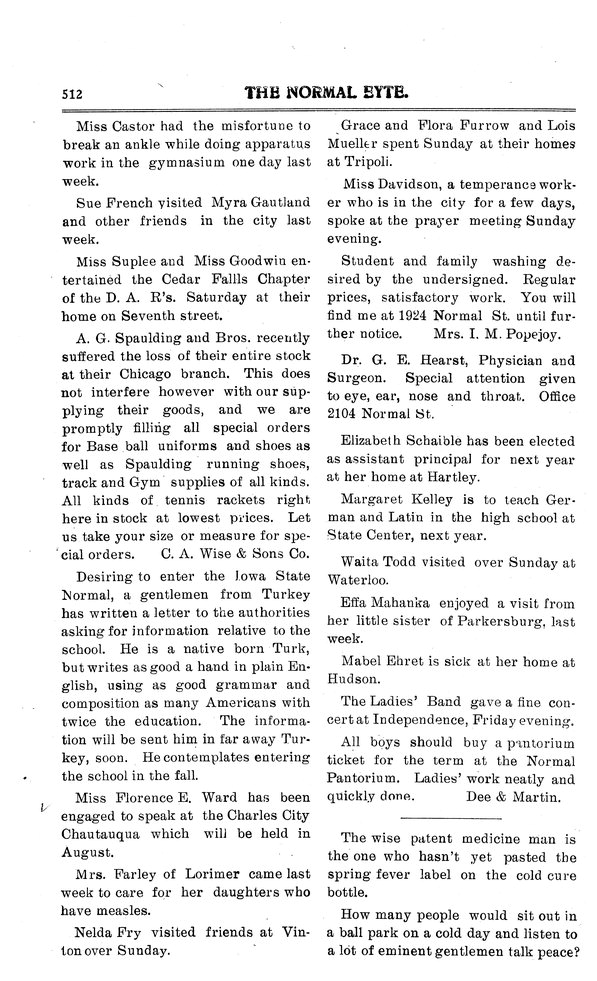 Grace and Flora Furrow and Lois Mueller Visited Tripoli.
