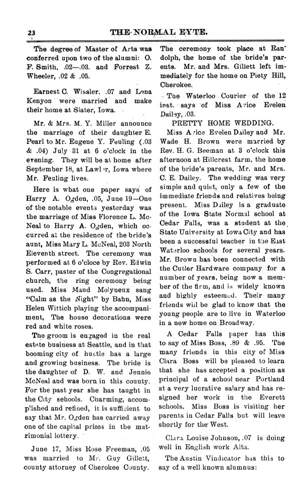 | The Waterloo Courier | Avice Evelen Dailey and Wade H. Brown were married. |