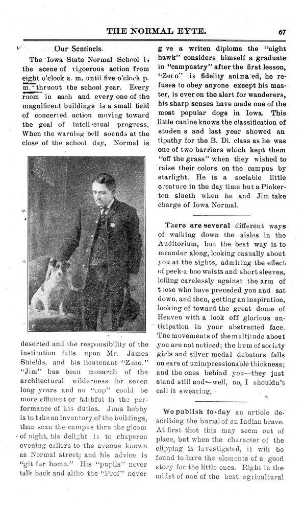 | Our sentinels | A look at the work of night watchman Jams Shields and his dog Zeno; photo. |