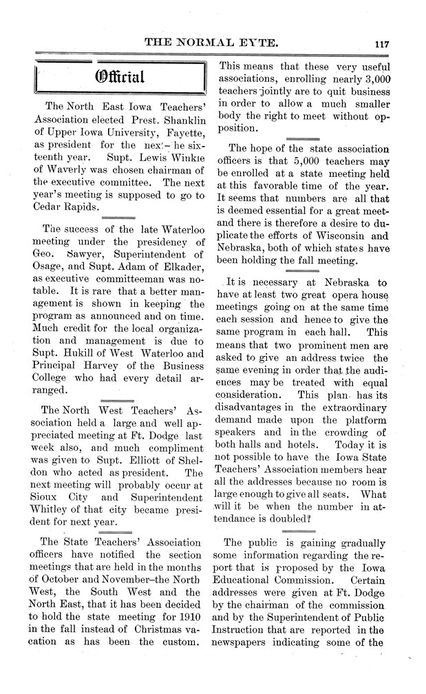 | The North West Teachers' Association | Held successful meeting in Fort Dodge. |