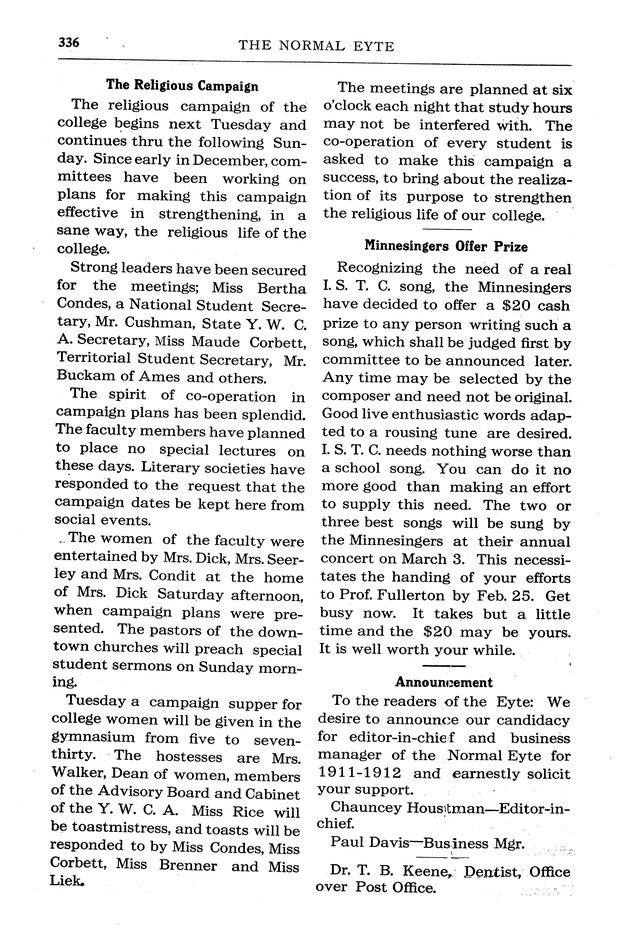 Announcement Chauncey Houstman and Paul Davis are running for positions on the Normal Eyte staff.