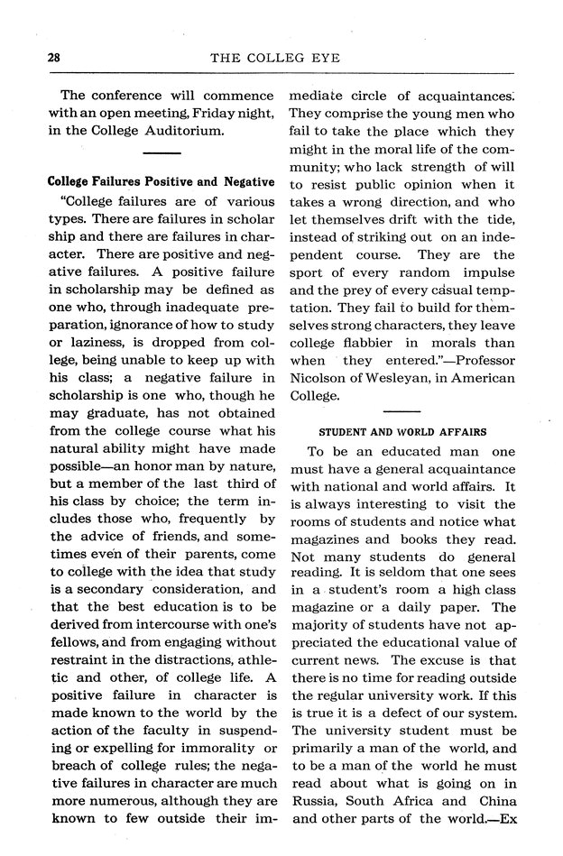 Student and world affairs Students need to have a general acquaintance with world and national news.