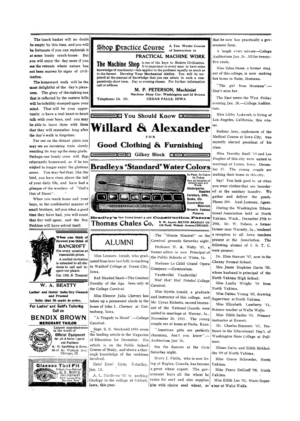 | During the Washington Educational Association | W. Nelson held a reception for all Iowa teachers present at the event; list of I. S. T. C. alumni. |