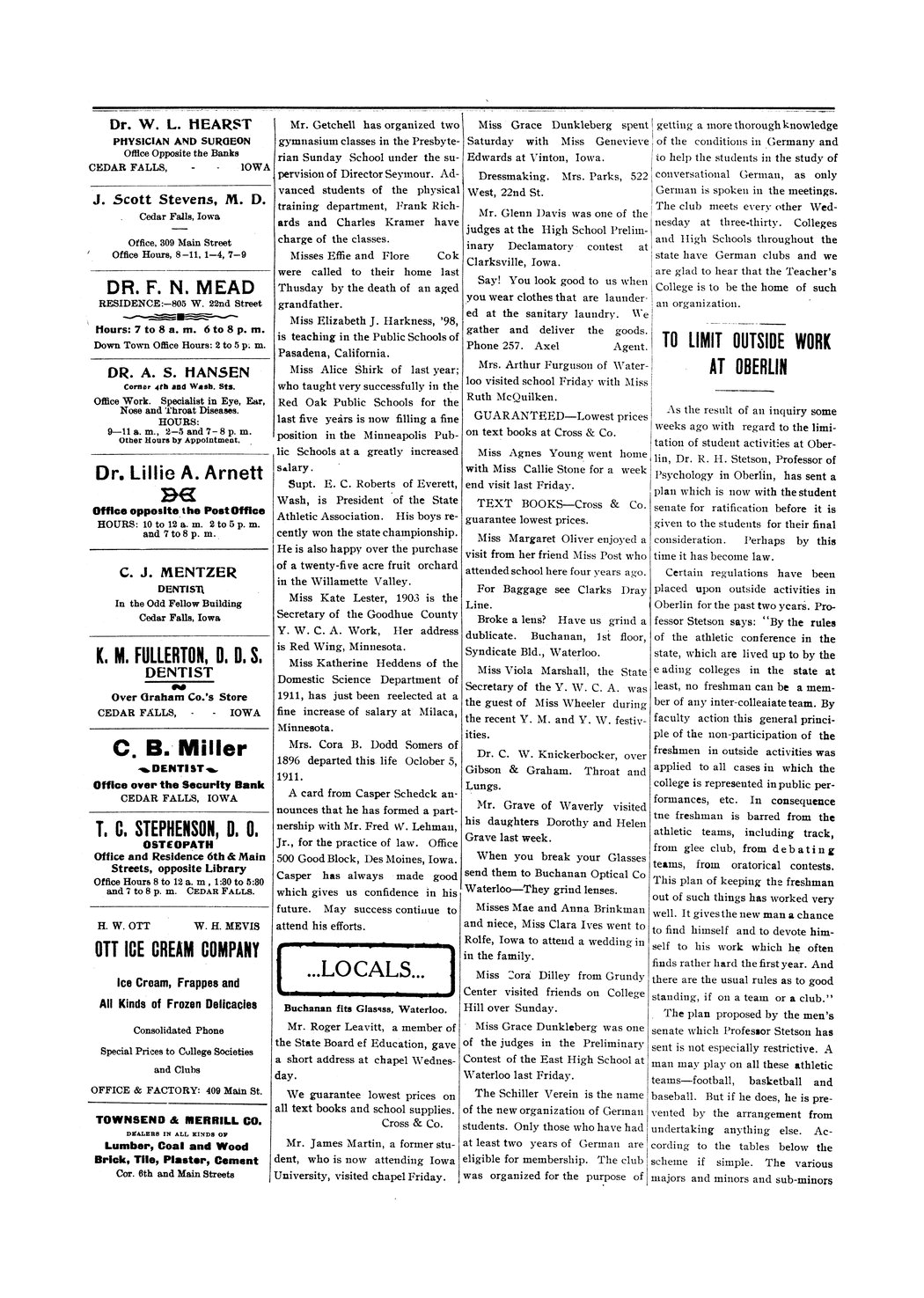 Was the guest of Elizabeth Wheeler during the recent Y. M. and Y. W. festivities. Viola Marshall is the state secretary of the Y. W. C. A.
