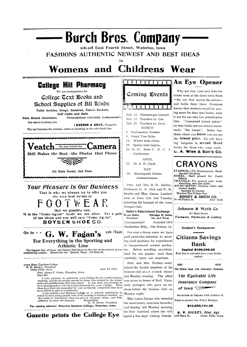 | President and Mrs. H. H. Seerley | Attended banquet for Normalites at University of Iowa. |