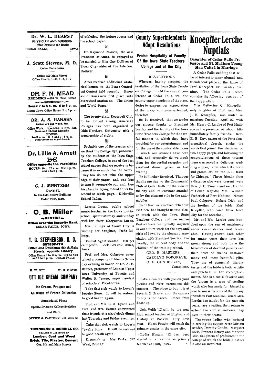 County superintendents adopt resolutions; praise hospitality of faculty of the Iowa State Teachers College and of the city