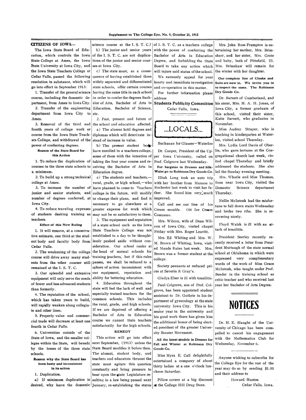| Dr. Cooper, President of the Upper Iowa University | Called on Prof. Colegrove last week. |