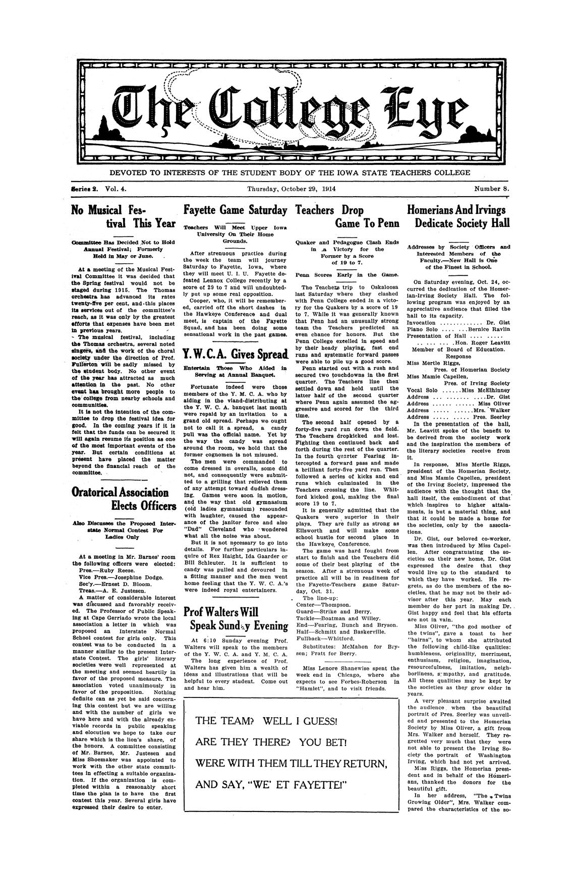 Fayette game Saturday; Teachers will meet Upper Iowa University on their home grounds
