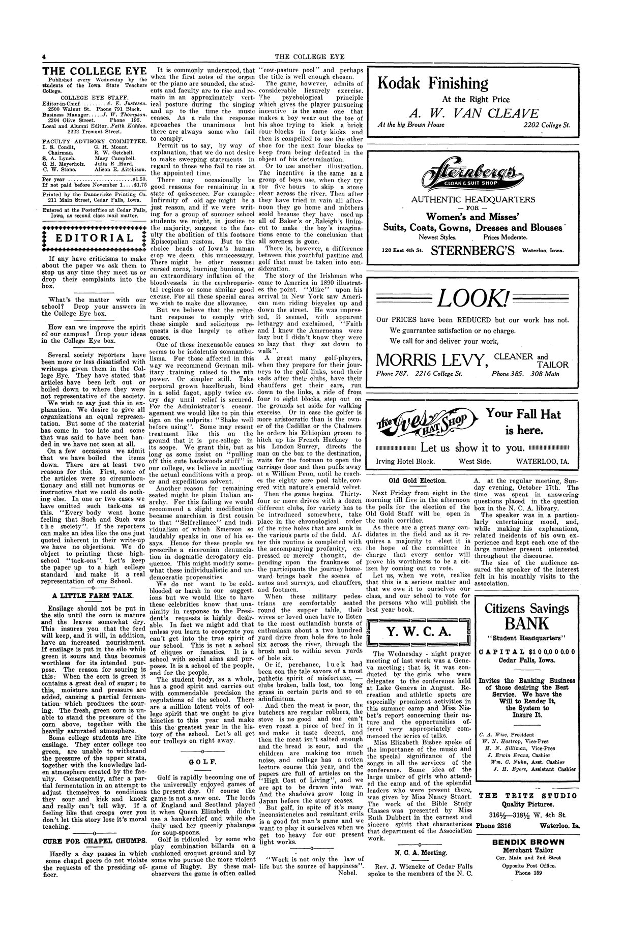 | Y. W. C. A. | Meeting was led by those who attended the Lake Geneva Conference. |