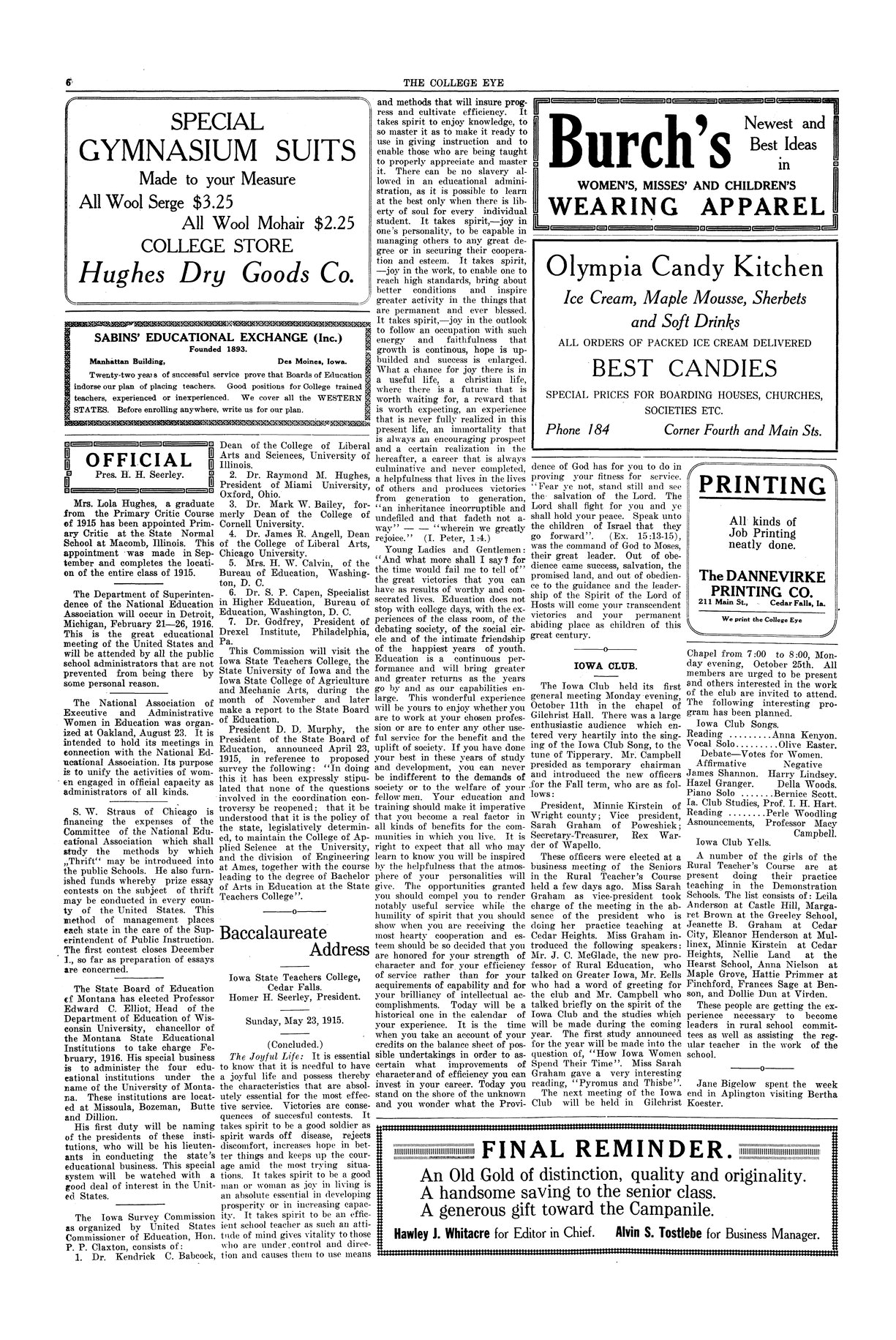 Baccalaureate address Concluded text of President Seerley's Baccalaureate Address.