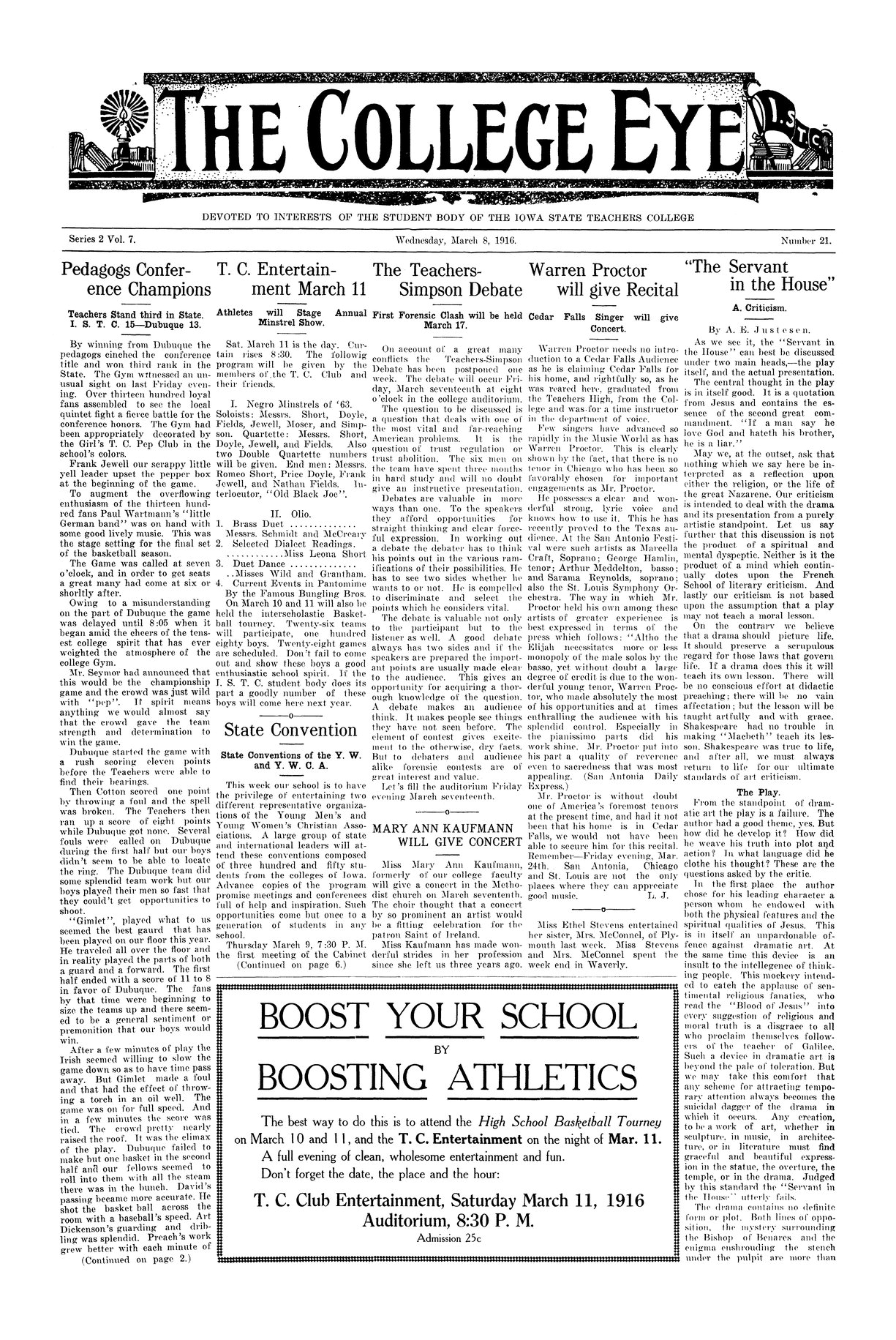 T. C. entertainment March 11; athletes will stage annual minstrel show T. C. Club members and friends will present musical show.