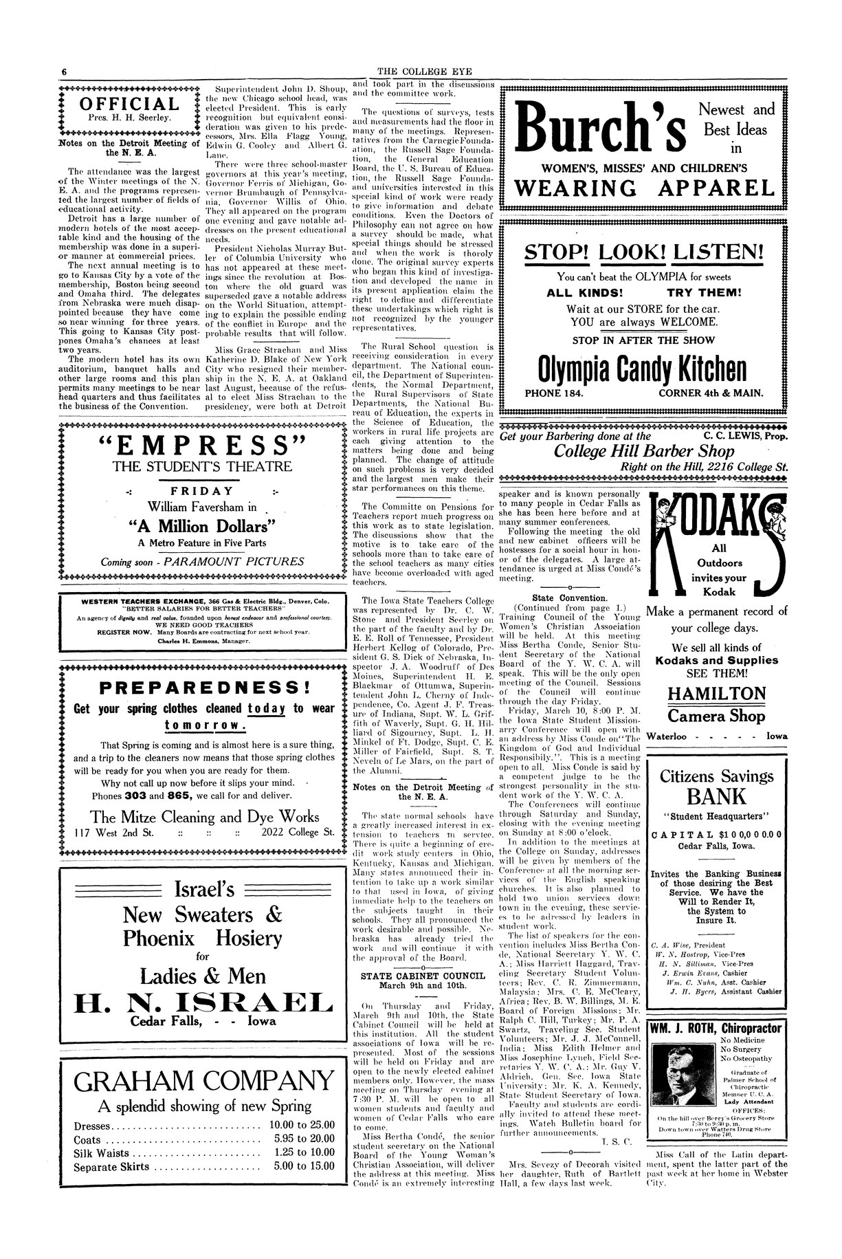 State cabinet council; March 9th and 10th The Thursday night meeting will be open to all women students, women faculty members and women in the community; all other meetings are open only to cabinet members.