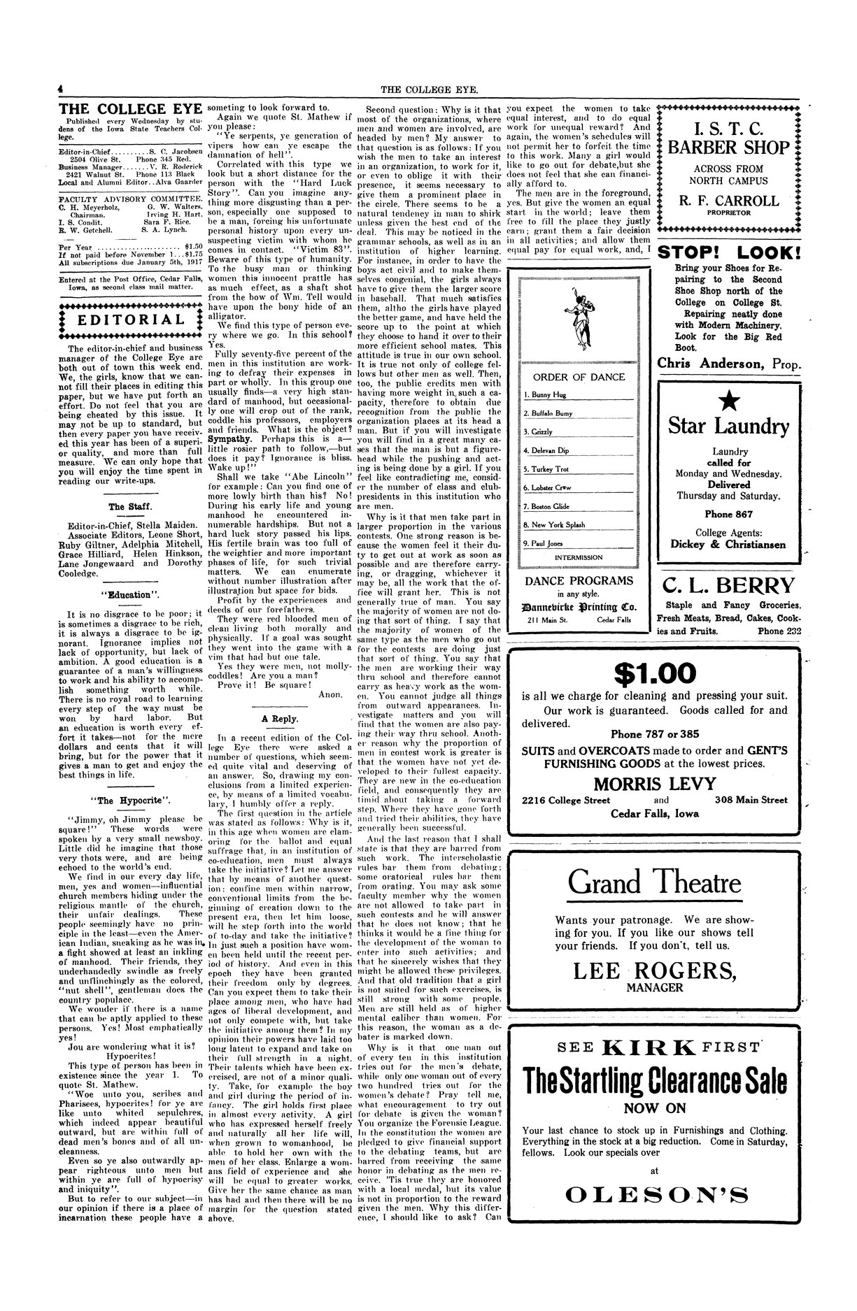 | The editor-in-chief | Women announce publication of this issue of the College Eye; staff listed. |