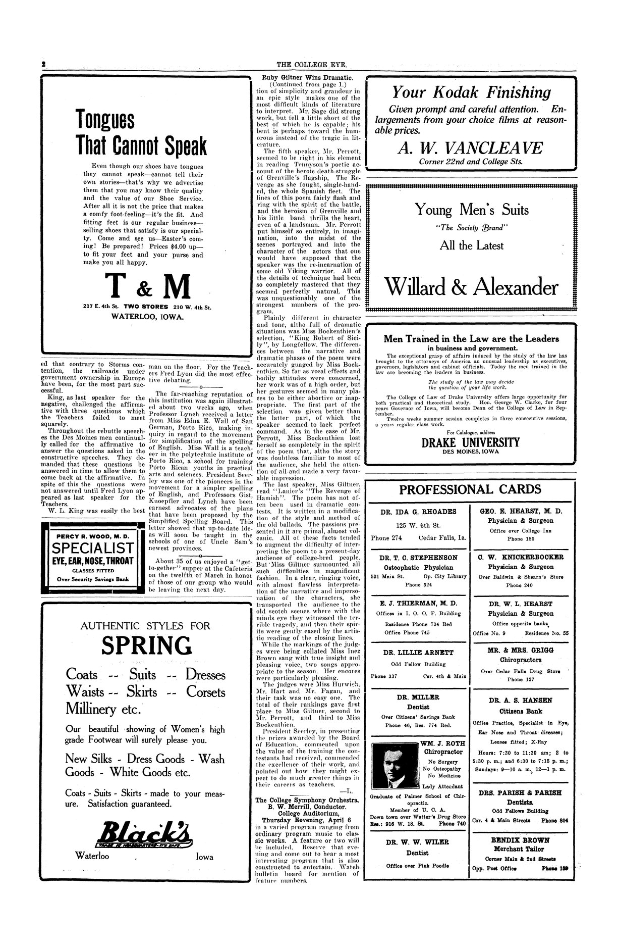 | The College Symphony Orchestra; B. W. Merrill, conductor | College Orchestra will perform April 6 in the college auditorium. |