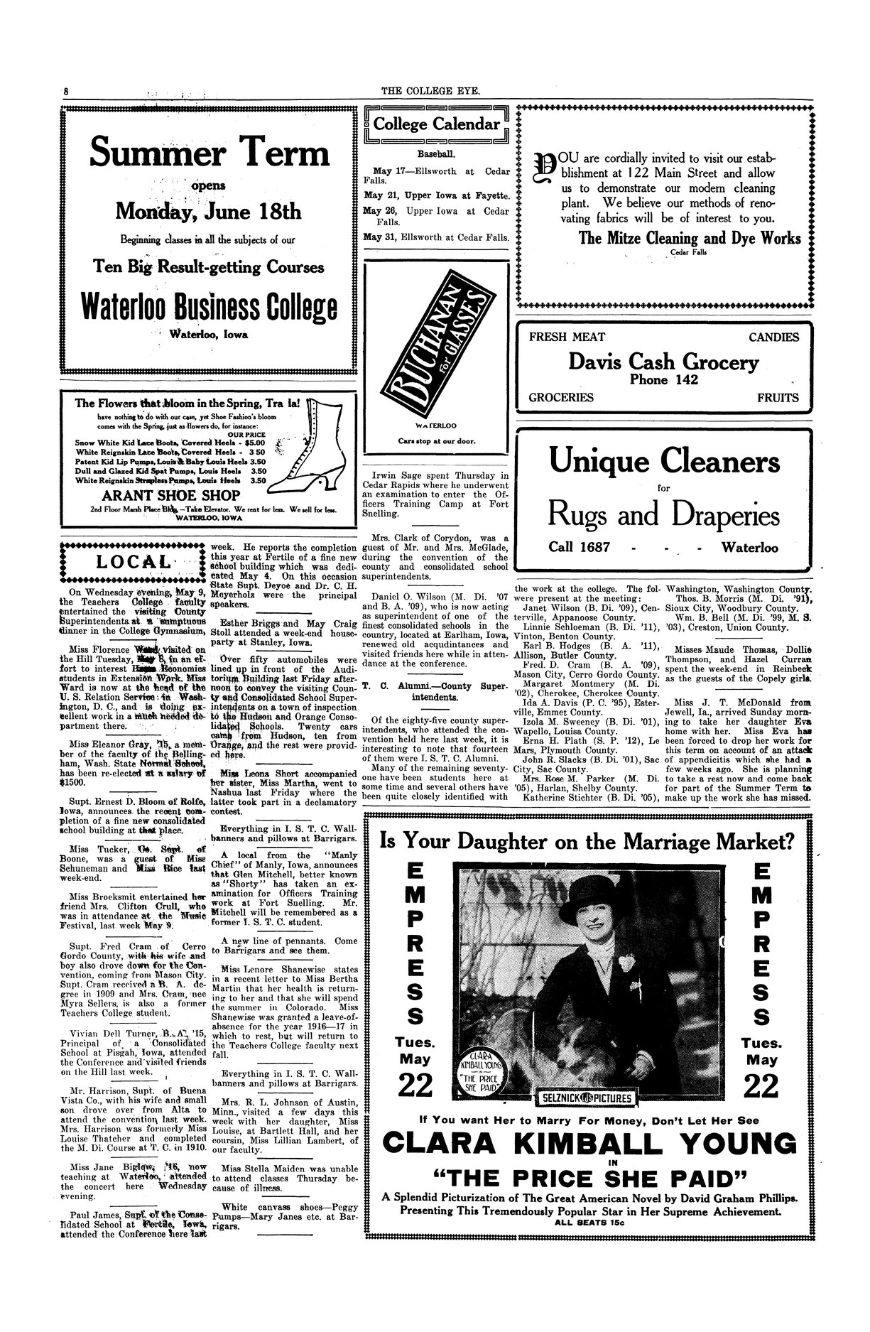 | Misses Maude Thomas, Dollie Thompson, and Hazel Curran | Spent the weekend in Reinbeck. |