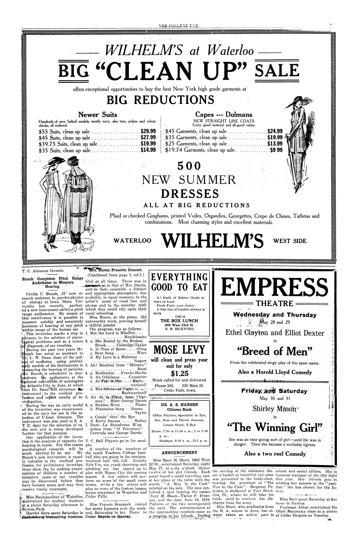 | Bunch completes pitch range audiometer to measure hearing | Alumna Cordia Bunch invented pitch range audiometer while working as a research assistant at Iowa State University. |