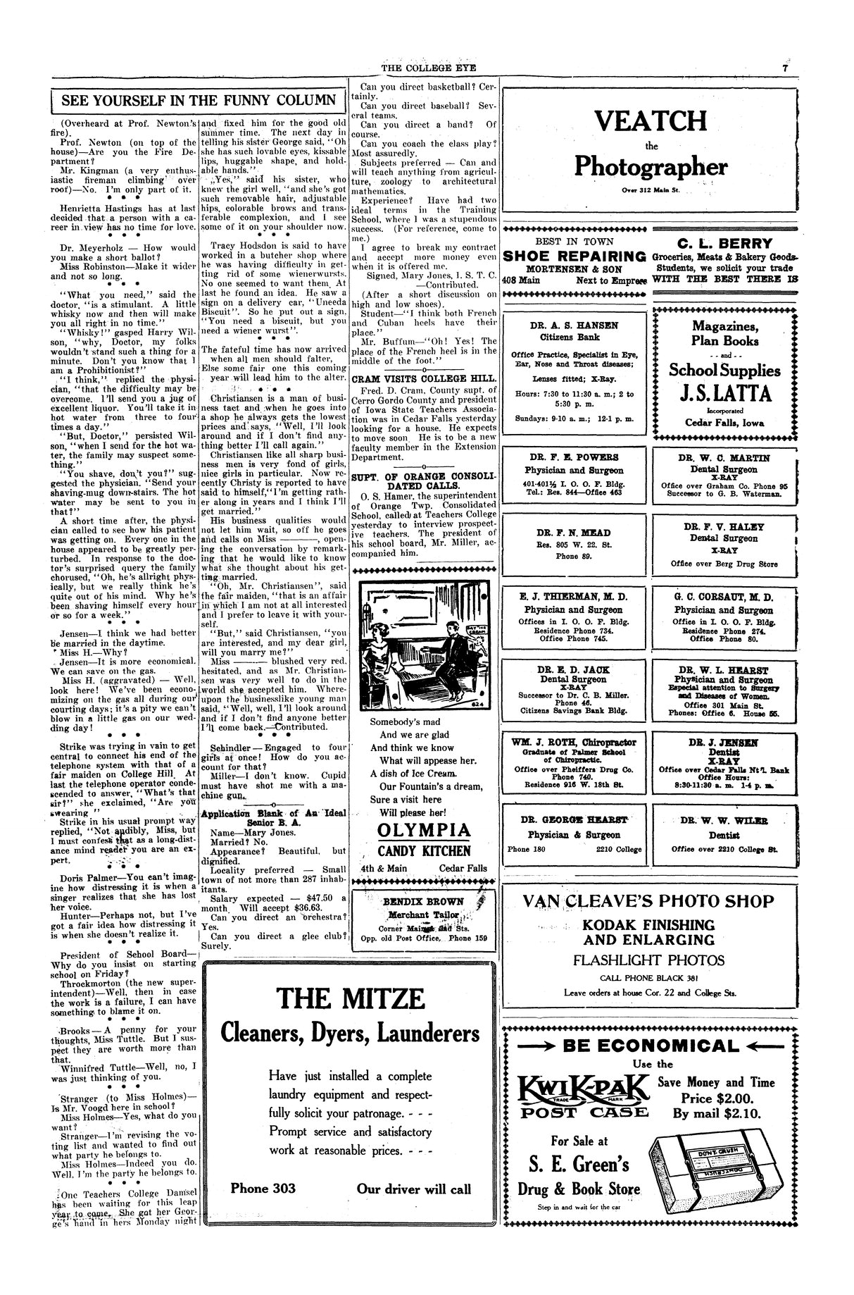 Cram visits College Hill Will take up work in extension soon; looking for a house.