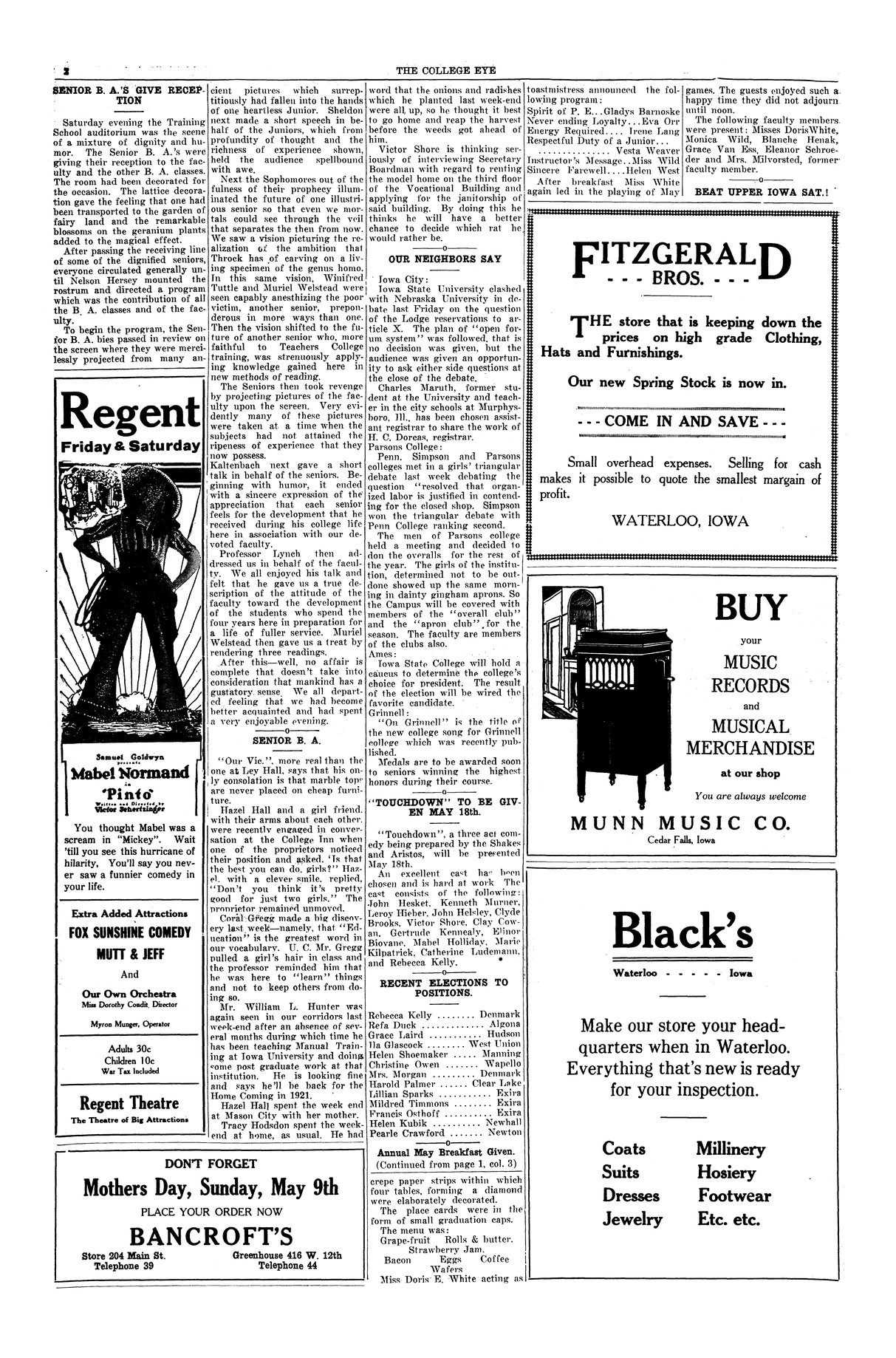 | Senior B. A.'s give reception | Senior class served as host for banquet at Training School. |