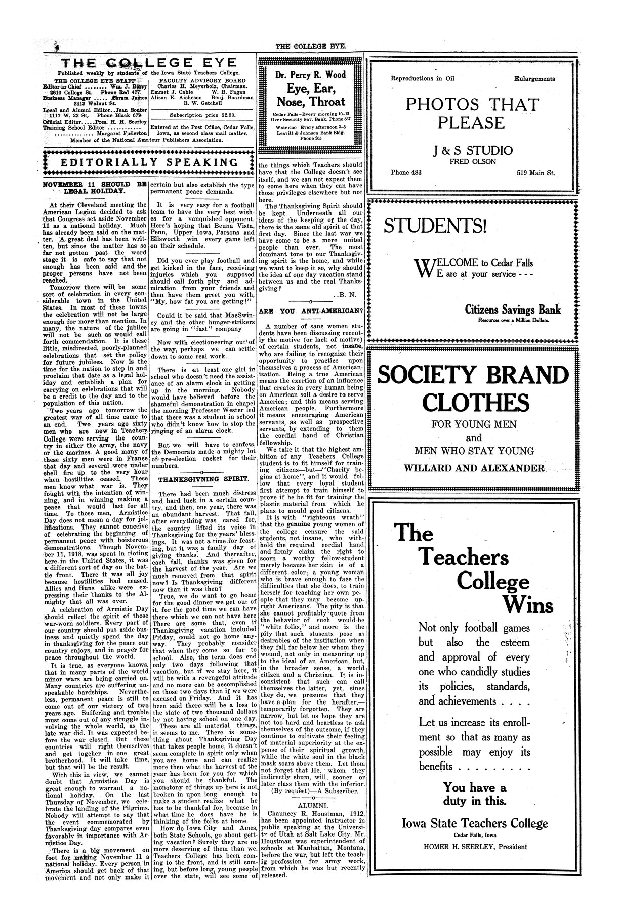 | Editorially speaking; November 11 should be legal holiday | Should remember the great sacrifices that those in military service made. |