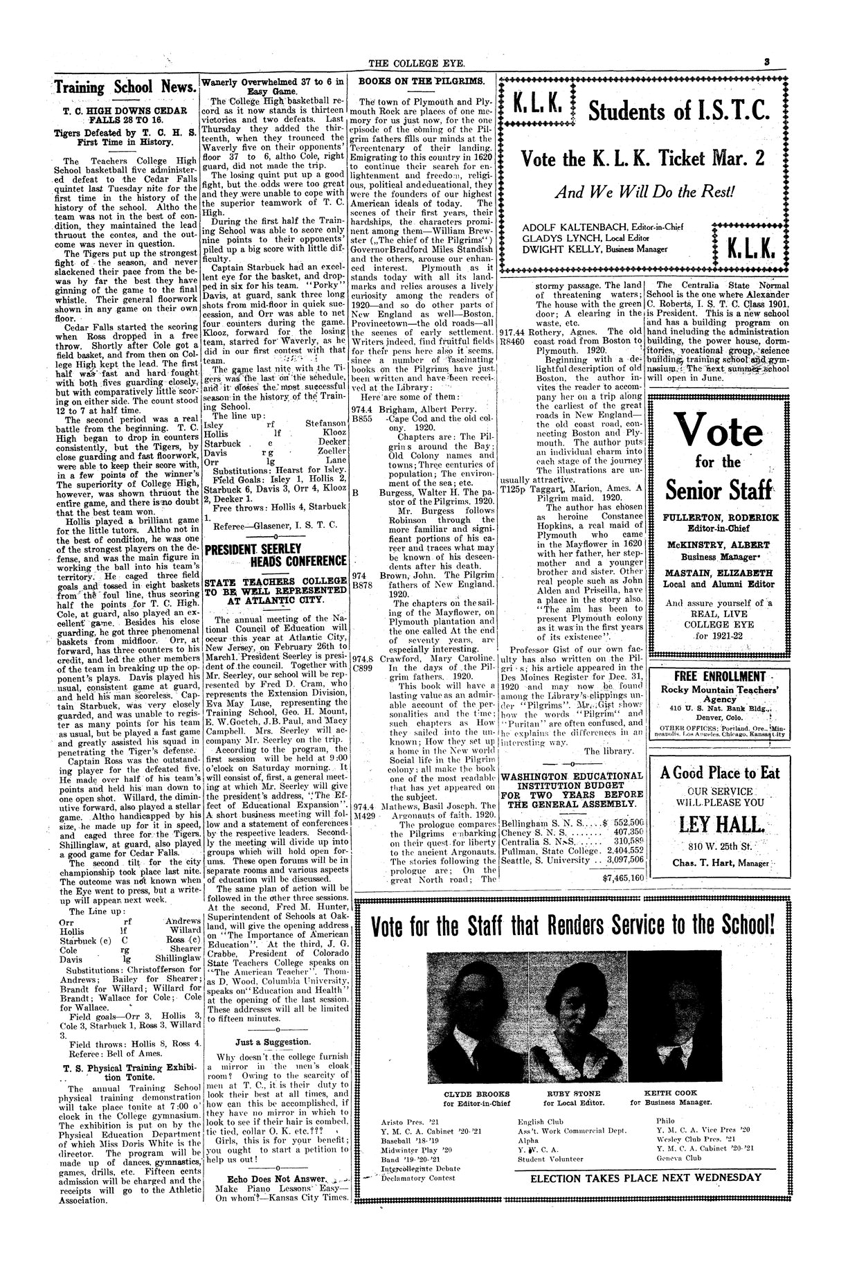 | K. L. K.; students of I. S. T. C. | Seeks support for the College Eye election. |