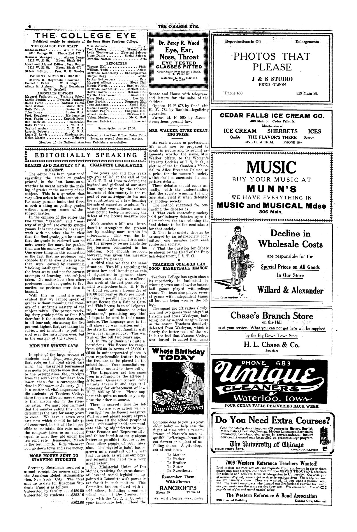 Editorially speaking; more money sent to starving students Total to date of European Student Relief Fund is $802.66 from T. C. alone.