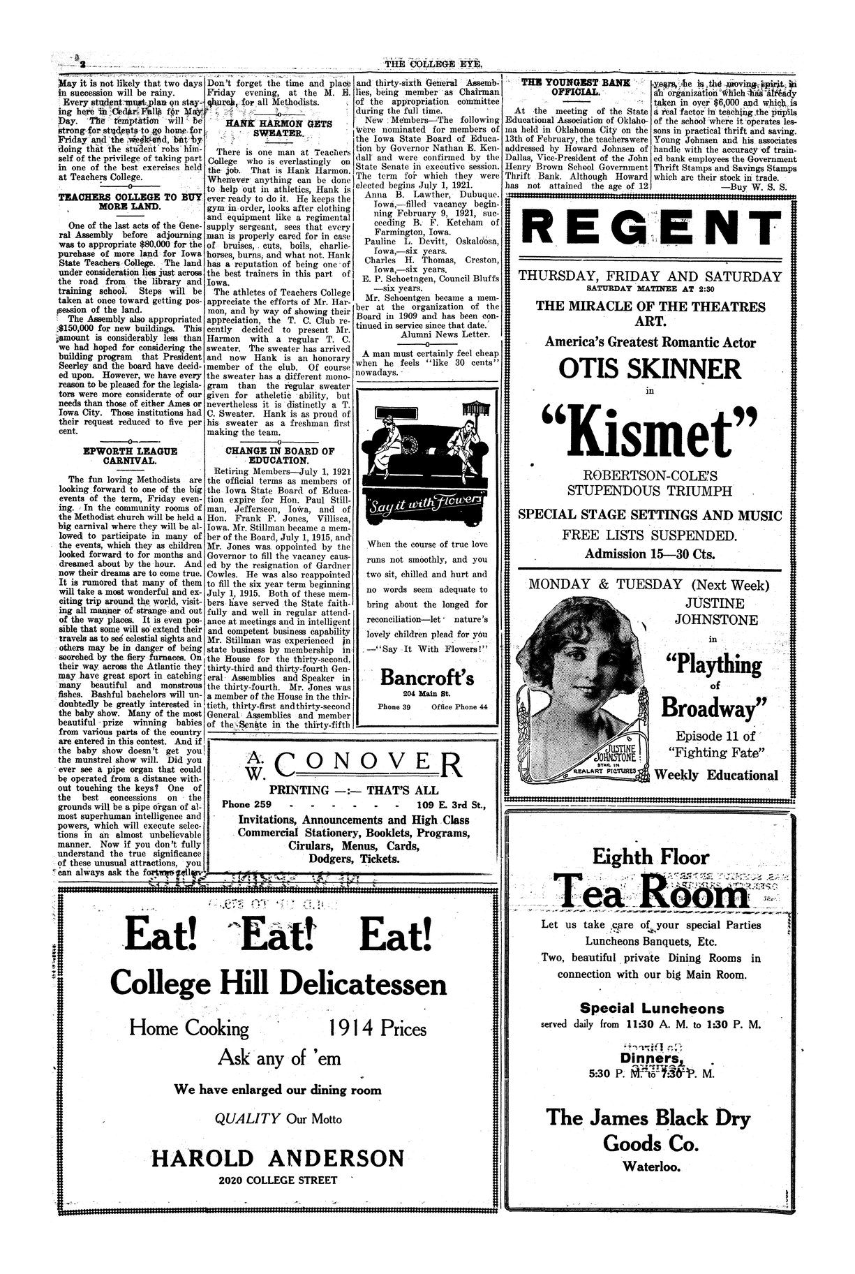 | Teachers College to buy more land | General Assembly appropriated $80,000 to T. C. to buy land south of current campus; also appropriated $150,000 for buildings |