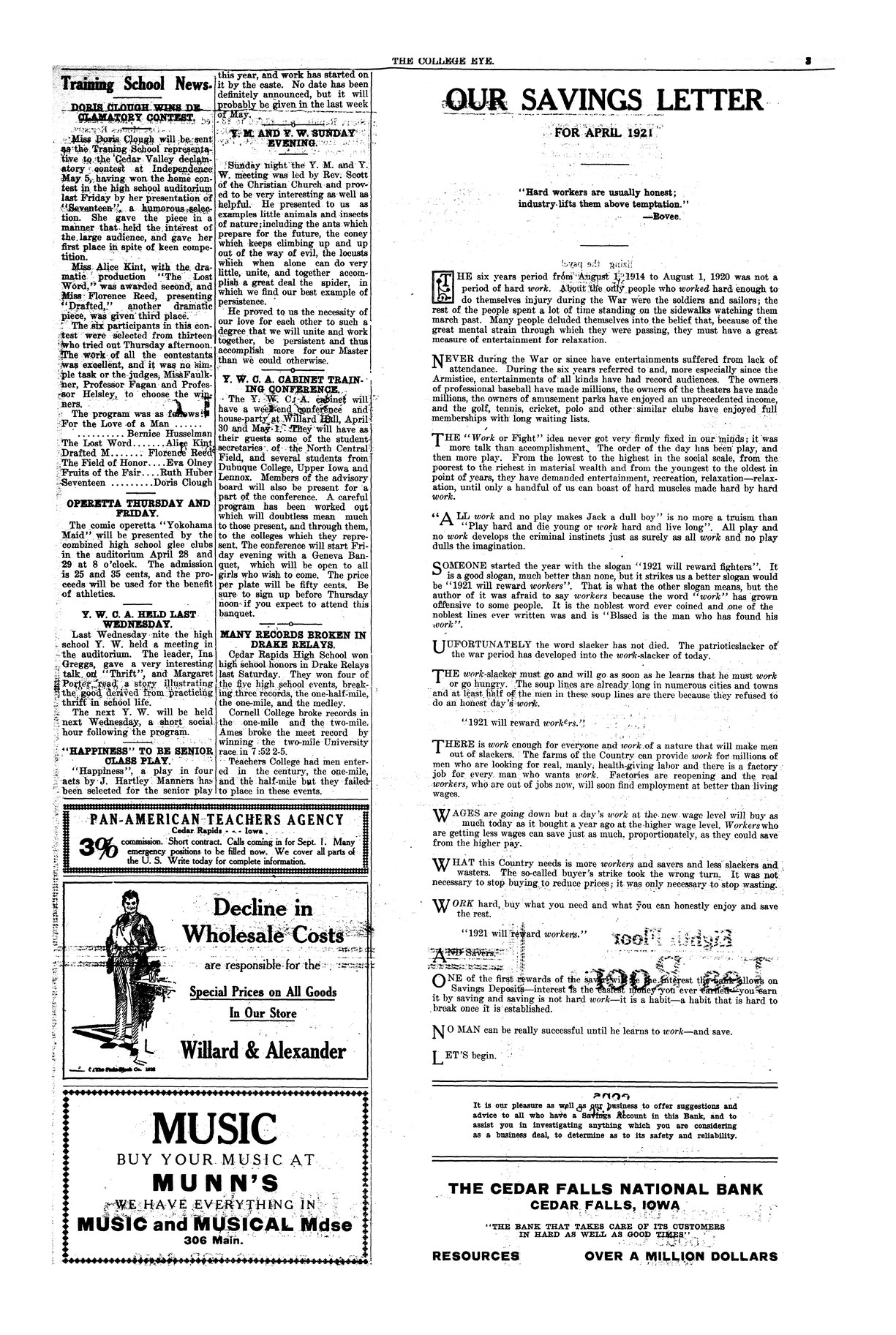 | Y. W. C. A. cabinet training conference | Will be weekend event with Dubuque, Upper Iowa, and Lennox; will start with a banquet. |