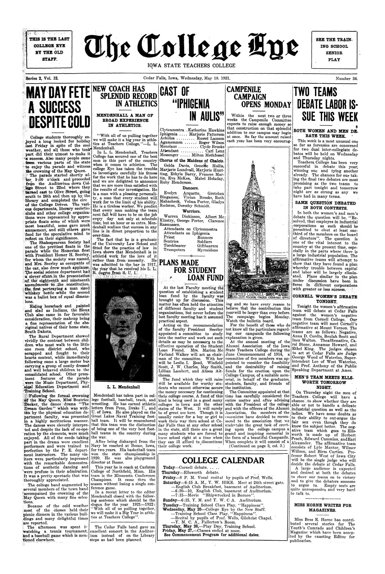 New coach has splendid record in athletics; Mendenhall a man of broad experience in athletics Short biography of new coach; photo.