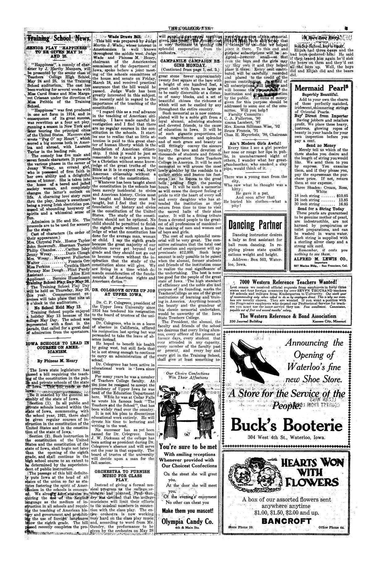| Training School News | "Happiness" to be performed by T. C. High seniors. |