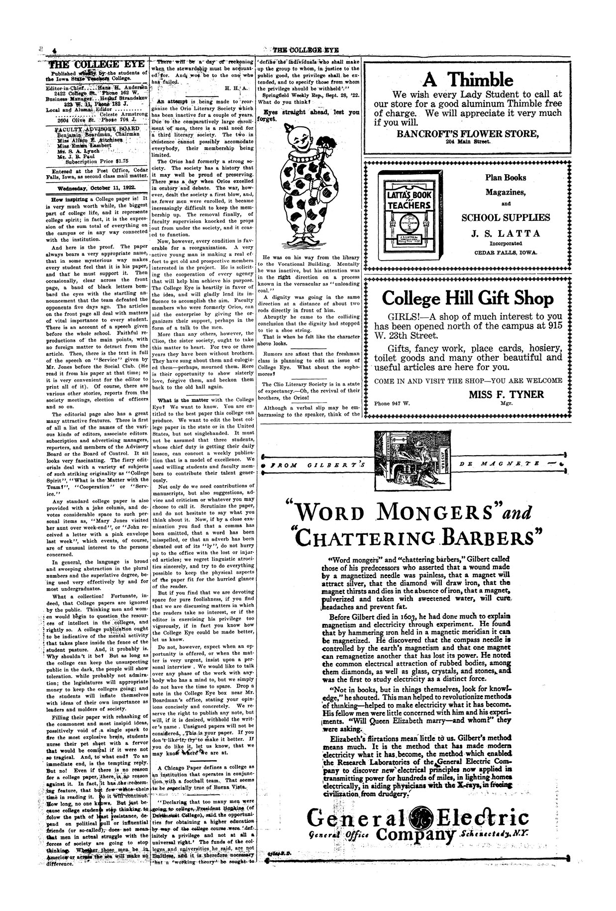 | How inspiring a college paper is! | Criticizes the College Eye publication. |