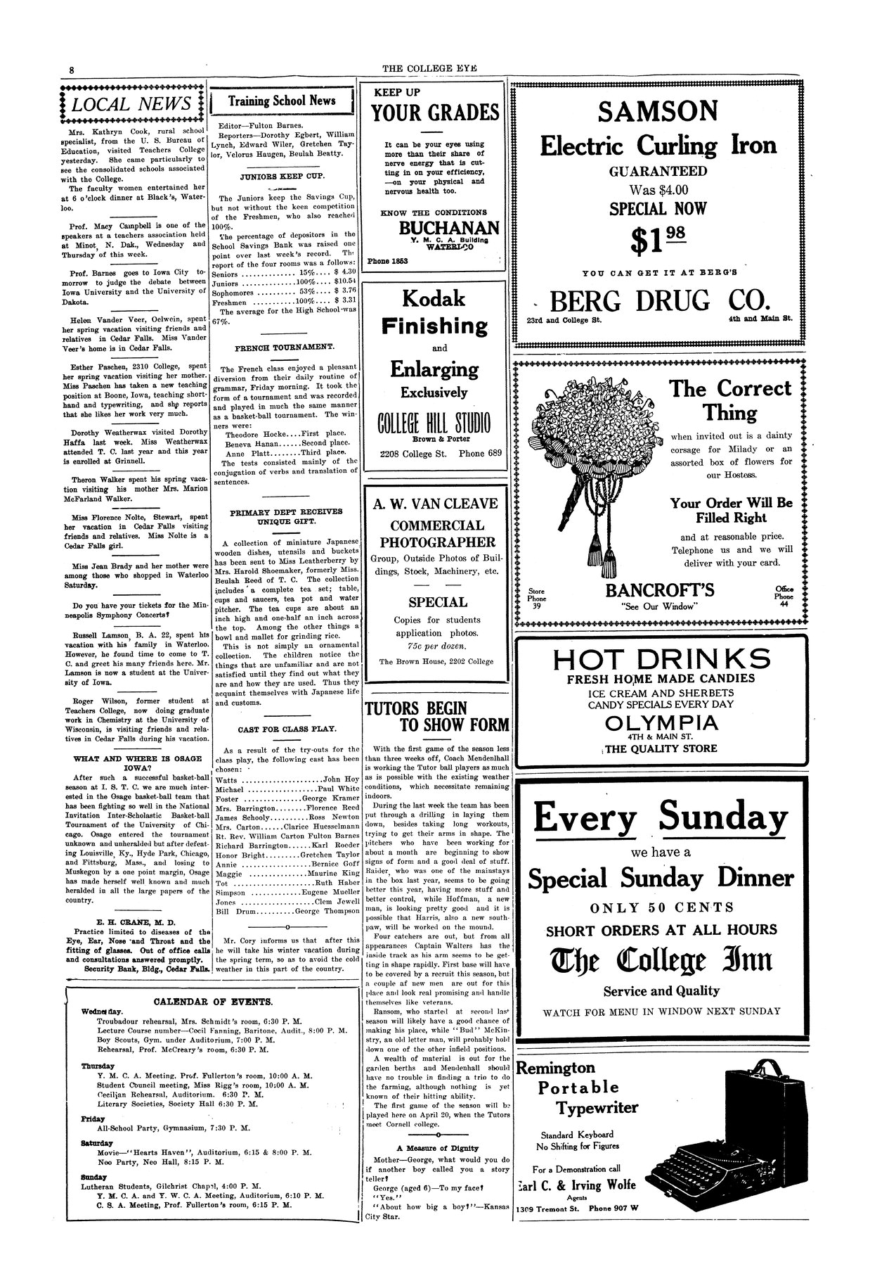 | Miss Florence Nolte | Visited friends and family in Cedar Falls during vacation. |