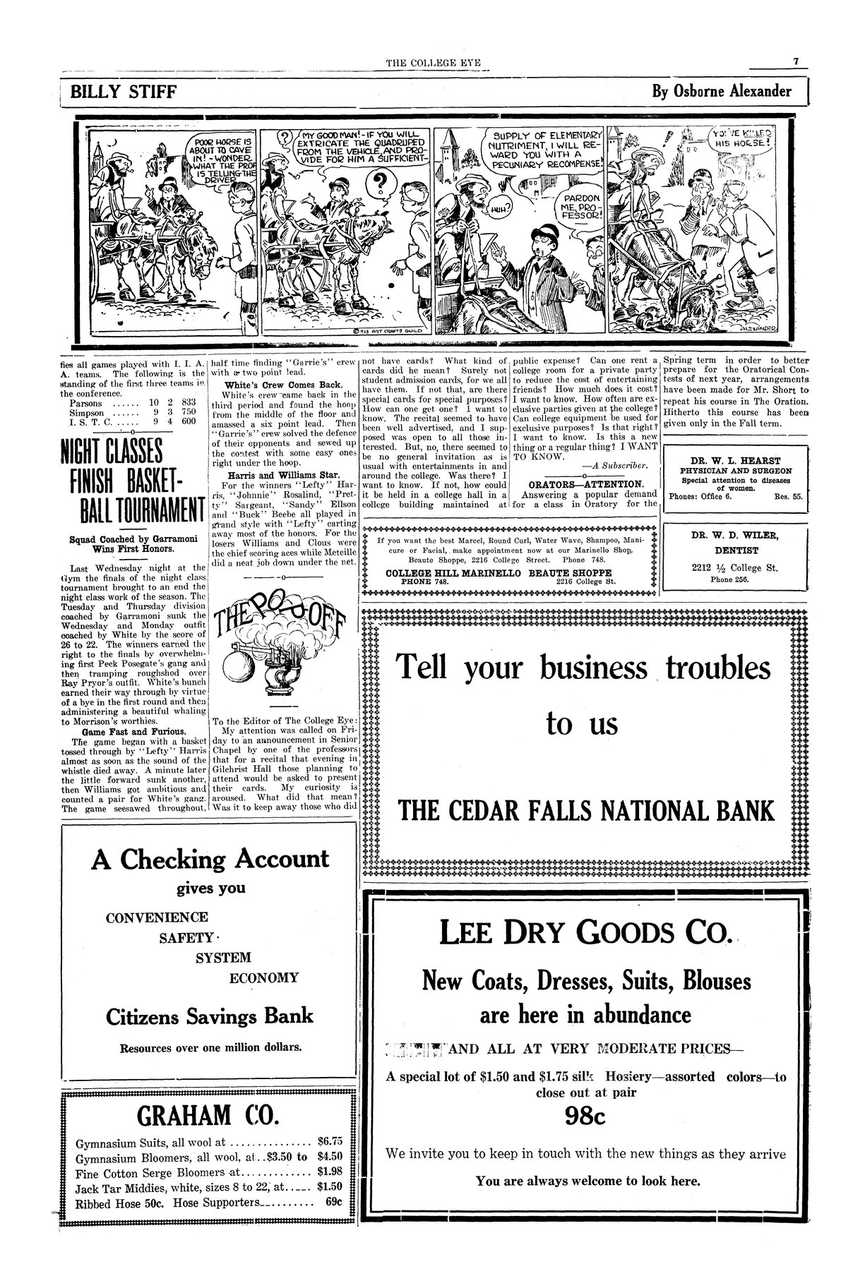 | Night classes finish basketball tournament; squad coached by Garramoni wins first honors | Tuesday and Thursday crew won over Monday and Wednesday crew, 26-22. |